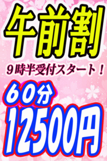朝9:30〜 受付スタート! 10:00〜12:00まで 限定のスペシャル価格♪ 合言葉は 『 午前割 』♪ ご予約も無料でOK!! 池袋一のコスパ!! 完全総額で痴漢し放題!!!